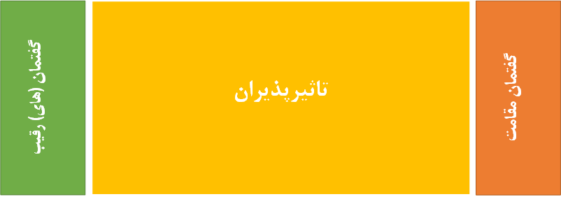 در هر جامعه ای، تکثر نگرشی و عقیدتی در حوزه های مختلف از جمله حوزه سیاست وجود دارد. اما نکته مهم در تحلیل رفتار اجتماعی یک جامعه این است که بسیاری از افراد جامعه، دیدگاه و نگرش خود را از دیگران الگو می گیرند. بر این اساس قدرت نفوذ، تبلیغات و اثرگذاری رویکردهای مختلف، تعیین کننده میزان تمایل افراد تاثیر پذیر است. در واقع قدرت اقناعی و عملکردی هر طرف بیشتر باشد، می توانند از عده افراد تاثیر پذیر کم کرده و بر مساحت مستطیل خود در کنار اضافه کند.