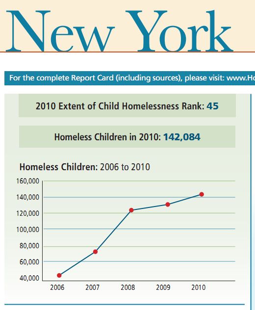 البته شهردار نیویورک باید خوشحال باشد چرا که از 1.6 میلیون کودک بی خانمان در کشورش در سال 2010 در حدود 140000 نفر آنها در شهر تحت مدیریت او زندگی می کنند؛ یعنی چیزی در حدود 8 درصد!